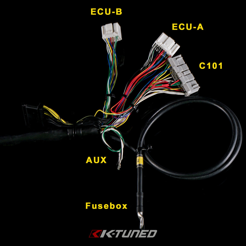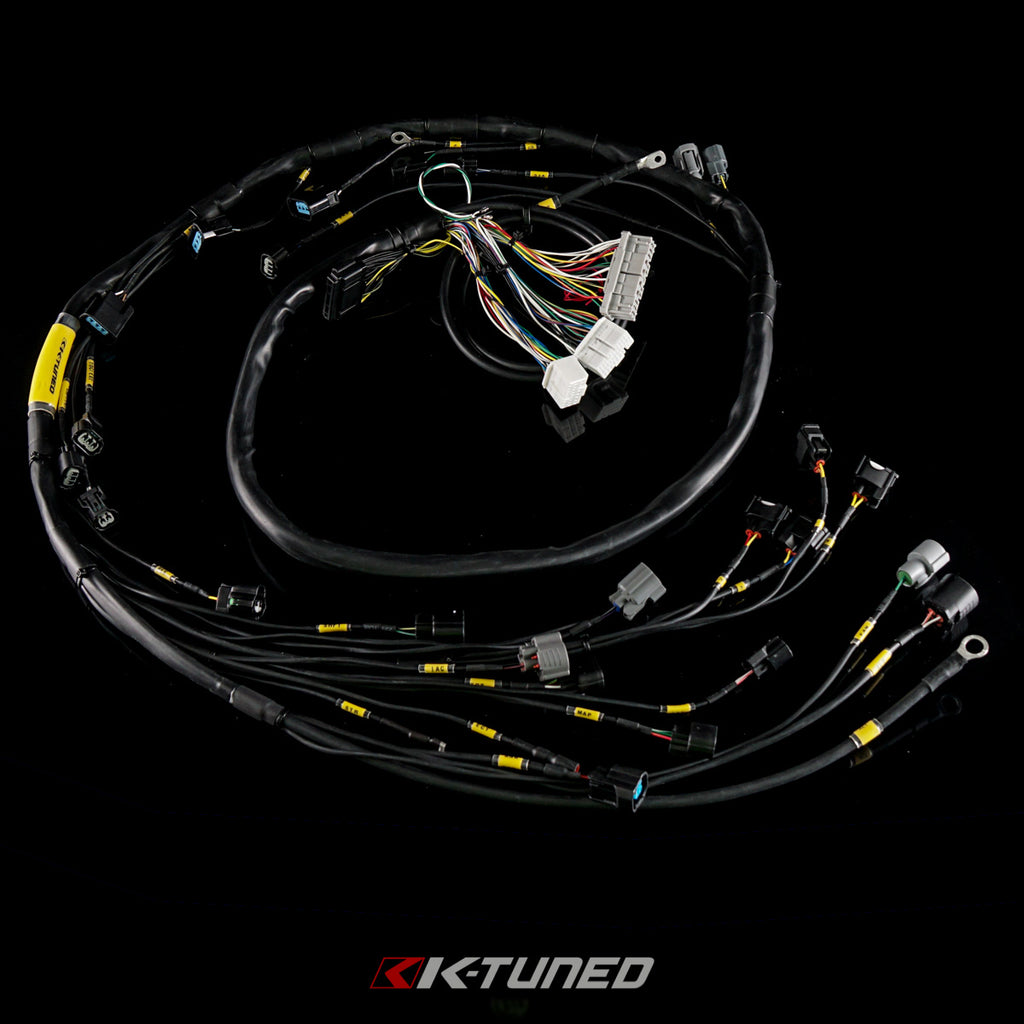 The K-Tuned Tucked Engine Harness is designed as a high quality replacement 02-04 RSX Type-S harness that offers a super clean look. We have made the harness with lots of features so it will work with nearly all K-Series engine swaps and the 02-04 RSX Type S. It includes all the necessary plugs with a handful of extras (Fan Switch, IACV, Temp Sensor, ETC). We used only SAE certified automotive grade wiring resistant to moisture and most solvents to ensure quality and durability. High quality military grade heat shrink loom is used to cover entire harness which is resistant to gas and diesel. It is rated for -55° C to 150° C (-67° F to 320° F). We have also used a popular and clean tucked wire layout. The main harness runs over the valve cover and even hides the injector plugs, which come up from under the manifold. RSX injector plugs come with all harnesses. The pins on RSX injector plugs can be fitted into the oem RDX plugs which makes switching quick and simple. We have incorporated the charge harness and alternator power wire into the harness. We used a thin, but high grade power wire to help keep the overall size down. On swap chassis, the power wire will work with fuse box in factory location or relocated under the dash. Separate power wire is available for other chassis and those that prefer to run their own charge wiring. Everything is labeled clearly to ensure a simple installation and no confusion.