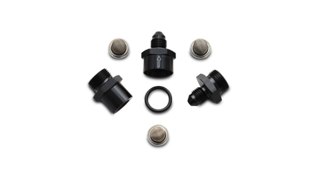 Vibrant’s unique, flow directional Turbo Oil Feed Inline Filters can be configured with your choice of Male AN Flare inlet/outlet or with a Female AN inlet and Male AN Flare outlet. Each Oil Filter kit also includes interchangeable 30, 80 and 150 micron filter elements, making them suitable for use with many different varieties of oil.