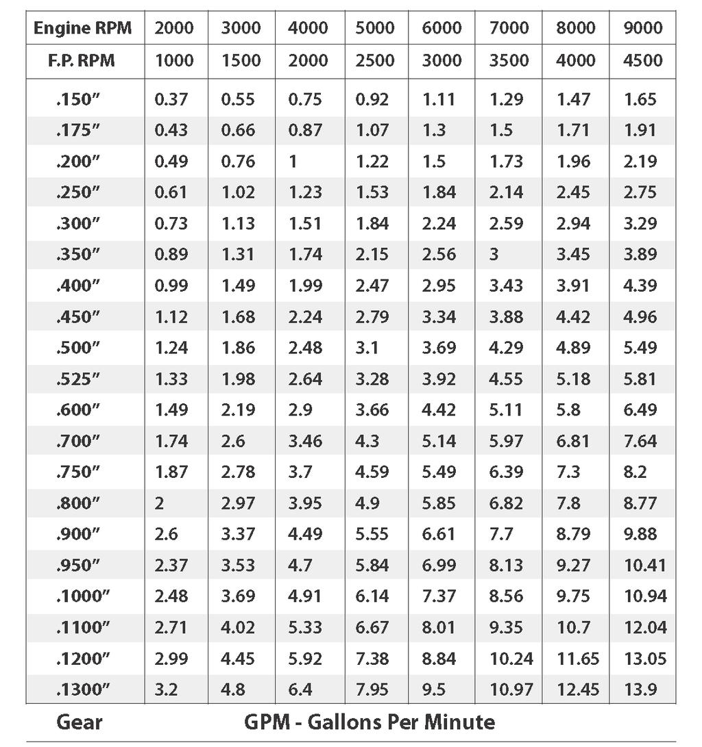 • Gallons Per Minute @ 8000rpm: 6.81 GPM